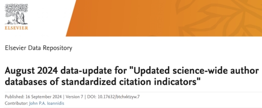 2024年9月16日,美国斯坦福大学JohnP.A. Ioannidis教授团队和爱思唯尔数据库(ElsevierData Repository)发布了第七版《2023年全球前2%顶尖科学家榜单》(World’s Top 2% Scientist…