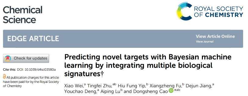 近日,91AV 曹东升教授团队在国际权威期刊《Chemical Science》(中科院一区,NI指数期刊)发表了题为“Predicting novel targets with Bayesian machine learning by i…