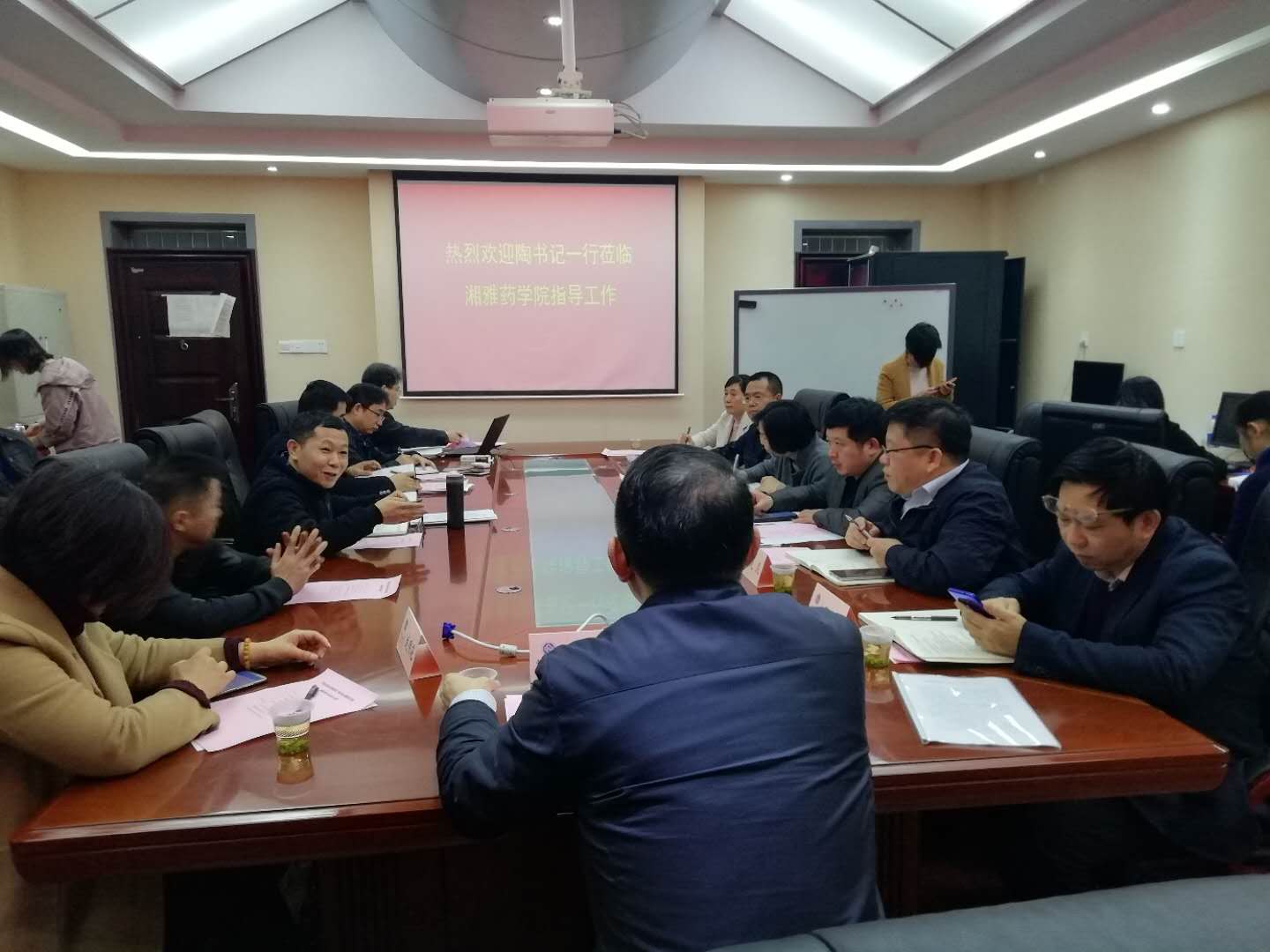 4月3日上午,校党委常务副书记陶立坚带领校发展规划与学科建设处武明花处长、校医院管理处莫龙副处长及湘雅医91AV 党委陈立章书记、夏昆常务副院长及湘雅医91AV 班子其他成员到湘雅药学…