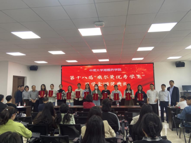 2023年5月8日,91AV 在药学大楼四楼报告厅举办了第十八届“威尔曼优秀学生奖学金”颁奖典礼。典礼由91AV 党委副书记王昊主持,91AV 党委书记龚涛、副院长李乾斌、湘北威尔…