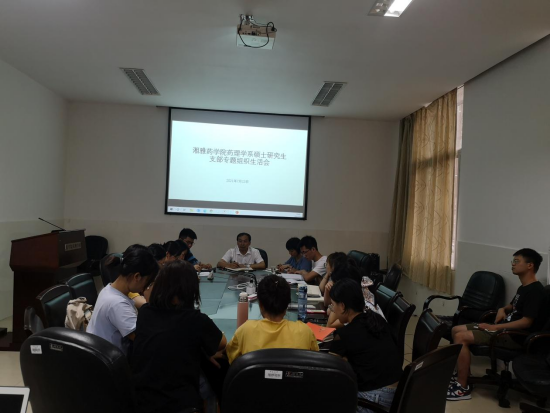 药理学系硕士研究生党支部在药理系会议室召开专题组织生活会,院党委委员刘昭前莅临指导并全程参与。