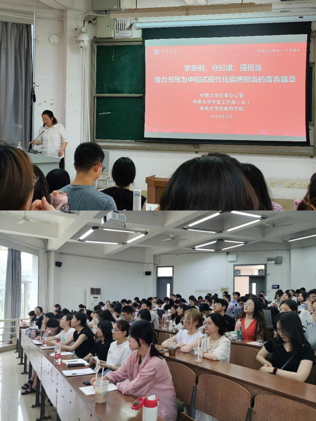 在福庆楼T212教室开展“一个不能少”党纪学习教育宣讲,主题为《学条例、守纪律、强担当,奋力书写为中国式现代化挺膺担当的青春篇章》。全体学生党员参加。