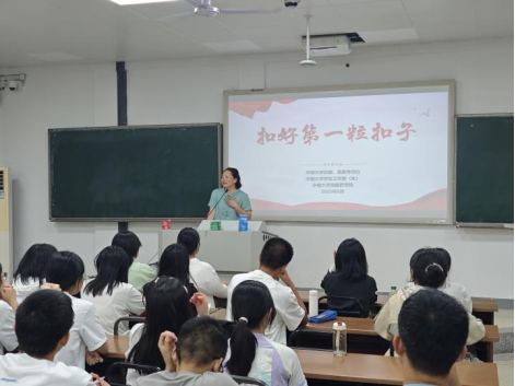 教育引导以坚定理想信念为出发,青年阶段是价值观形成的关键时期,需以崇高理想引领人生方向。她引用“第一粒扣子”的比喻,阐释理想信念对个人成长的导向作用,呼吁新生将个人追求与国家发展相结合,以忠诚与担当书写青春篇章。从强化纪律规矩为切入点,教育过程深入剖析严守纪律对学术诚信、行为规范的重要性。她强调规则意识是保障学术纯洁与个人成长的基石,希望同学们在大学生活中做到知止慎微、行有所界。最后,丰富的中南校友奋斗案例则带来了奋斗精神的升华,在场师生都感受到奋斗是成长路上的“底气”,唯有以奋斗之姿投身学业与社会实践,方能实现可持续的成长。正值九一八事变纪念日,全体师生在会后观看了《勿忘九一八》纪录片。