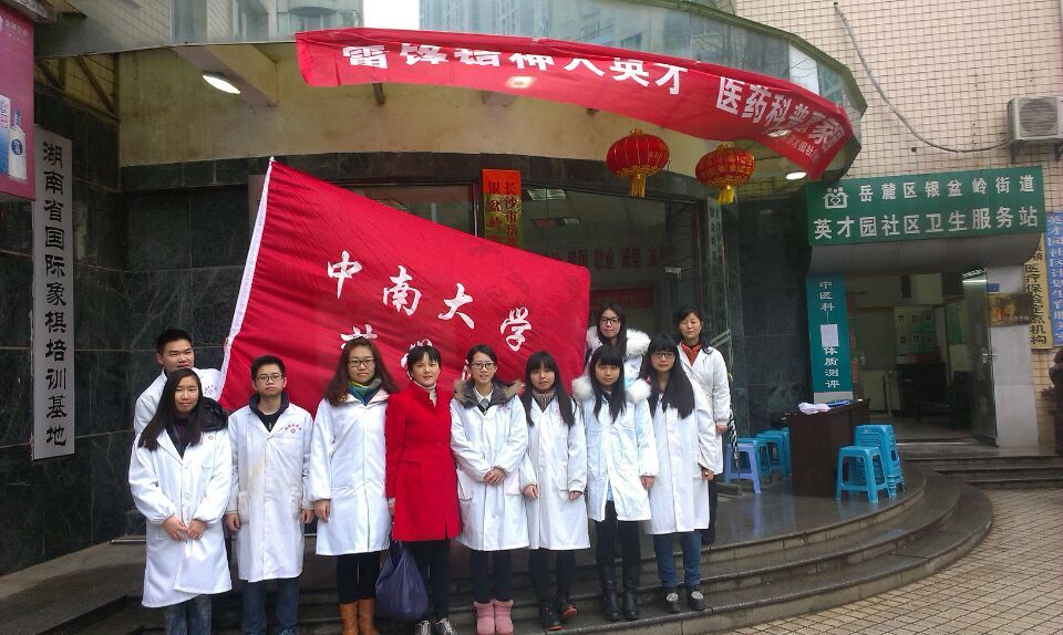 工会、团委、研究生学生会、本科生学生会本着纪念雷锋同志,弘扬雷锋精神的宗旨,带着院党委彭林书记“学雷锋庆三八”的嘱托,在院党委王昊副书记和学工办桂玲智主任的带领下,于上午9:00在英才园社区开展“安全用药知识进社区”的活动。尽管天空飘着毛毛细雨,春寒料峭,可是师生们的心却是火热火热的。