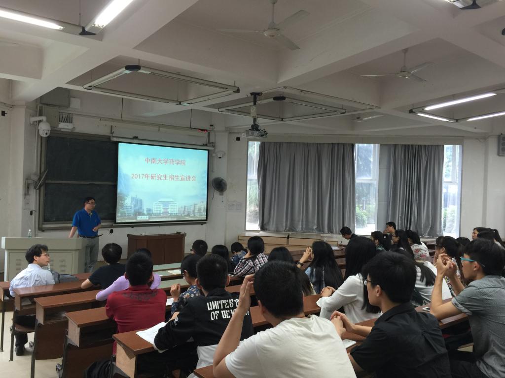 2017年研究生招生宣讲会。曾文彬副院长主持会议,会议主讲人有胡长平、曾文彬、周应军、丁劲松教授。彭傲霜、吴晖老师、药学和部分临床医学2013级、2014级本科生参加会议。