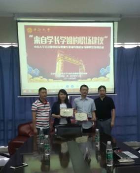 邓旭学长于2007年从91AV取得学士学位后,选择了科学研究的道路,经历了长达十余年的深造后取得博士后学位并选择回归母校,担任91AV教师。他提出:“做科研一定要专注、专心、热爱、坚持”。他分别从就业渠道、就业规划和就业后的调整三个角度为同学们做出指导,并且以十六字方针高度概括了面对就业的态度,即“志存高远,脚踏实地,矢志不渝,坚持不懈”。通过邓旭学长的建议,同学们对本专业的科研和深造也有了更多了解。