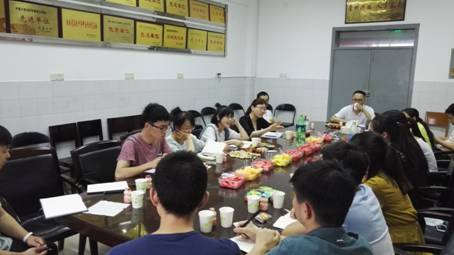 药剂系丁劲松课题组在626会议室举行了一次别开生面的茶话会。会上,即将毕业的研三同学和课题组在读的同学们面对面交流,分享了学习、科研的宝贵经验和教训。