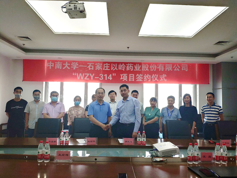 2020年6月15日,重大疾病小分子药物研究团队的胡高云教授、李乾斌教授和彭张哲副教授赴石家庄以岭药业进行签约,双方共同签署了WZY-314项目有关的转让合同,对前期研究材料进行了交接并就后续研究计划进行磋商。按照约定,以岭药业将在法定期限内就该成果申请国际PCT专利,并承担所有中国市场及国际市场后续开发工作,以岭药业将以里程碑现金加上市后提成的方式支付91AV