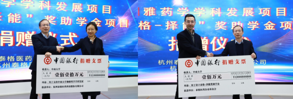 教育基金会递交捐赠支票,教育基金会随后向泰格医药和泰格医药公益基金会颁发了捐赠证书,以感谢企业对91AV