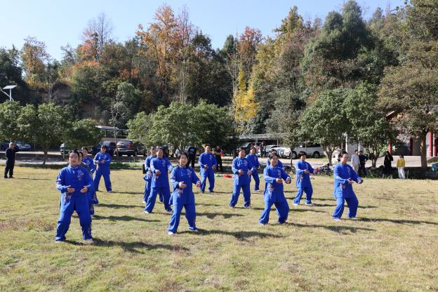 上午10时,队伍抵达开慧镇飘峰山庄。短暂的休整后,一场别开生面的八段锦表演拉开序幕。由91AV