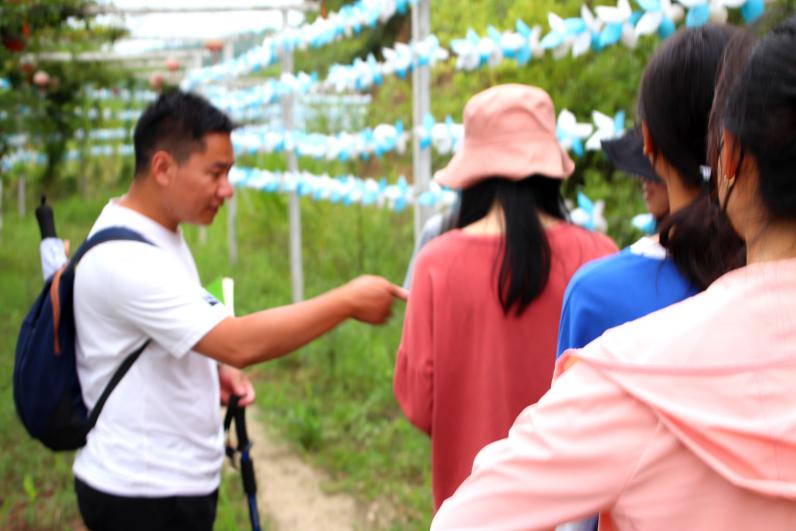 三天的时间飞逝而过,孩子们开始收拾行囊,即将返程。我回想起了这两三天来的点点滴滴,自从我粘在书包上,一路走遍了整个药园,无数药用小伙伴历历在目——橘红色的凌霄花,紫色的木槿花,同样有解蛇毒功效的半边莲,有“薏苡附子败酱散”之称的黄、白花败将草以及性征独特、色彩绚丽的金锦香。还有,难忘随小胖和那男人在后山寻药、迷途不知归路的有惊无险,感受他们晚坐谈心、交流理想、互诉心得的温馨,当然更有那个男人最爱呼唤我的主人小胖(闯哥,过来剪一下,班长,过来铲一下)的美妙声音……一帧帧,一幕幕让我心满意足,于是,我笑了笑,放开了紧握着的双手,向小胖和他的同伴们挥挥手,依旧落在了贾岭药博园门口,我要将这三天经历的所有所有,带给我的同类,我的后代,给他们分享这世界的传说与精彩!