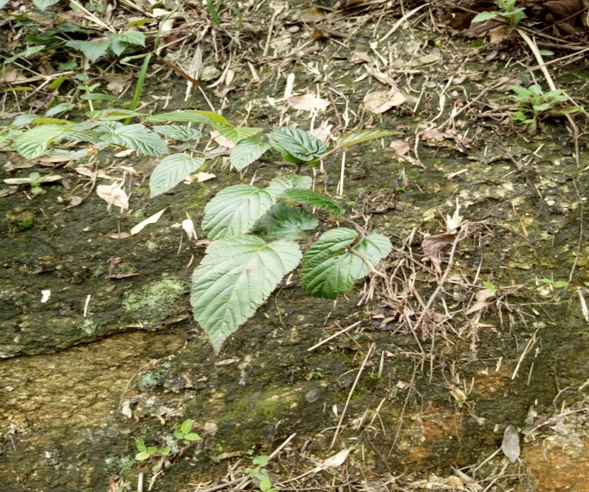 我们见到的第一棵灌木是覆盆子,这是一种不怎么友好的植物,浑身上下布满恶意的刺,向全世界宣各我是不容侵犯的。叶子互生,心形叶片,叶面有绒毛和细刺,茎上披有更粗的刺。枝上已结有果实,是聚合果,由一朵花中的许多离生单雌蕊聚集生长在花托上,并与花托共同发育而成。可惜时节没到,不能品尝其美味,实在是一大遗憾啊。世上唯有美食与知识不可辜负,谈到吃,我们的兴致立马高昂起来,前行的脚步忍不住加快了。又见一株高大的木质藤本,卵圆形对生叶,挂着一串串紫色的蝶形花,初步判断这是豆科植物,但是具体是什么还是得靠老师。我们叽叽喳喳讨论了半天,女生们可爱花了,吵着要一束留作纪念,我们仔细观察手中的花,有的说是紫藤,有的说是紫荆,有的通过百度说是崖豆藤……答案千奇百怪,最后老师过来肯定地说是紫藤,并说了判断依据。我们如梦方醒:原来网络上的资料鱼目混珠,还是需要自己掌握相当量的相关知识,仔细甑别才不致于让错误的信息入侵大脑,影响我们对事物的判断。
