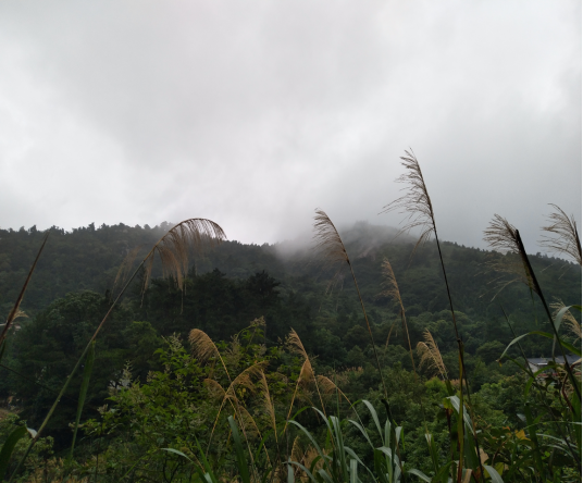 水光潋滟晴方好,山色空蒙雨亦奇。除却日光晴朗时分的天蓝山青,阴雨迷蒙的衡山别有韵味。山路野径旁的东茅,在清风淡雨中轻轻俯身,向我们致意。抬头的时候,惊动了一群低飞的燕子,它们振翅蹁跹,而后停落在电线上,美如画。