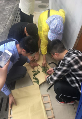 约是下午6点,我们回到了住处,收获颇丰。采集完药材后,接下来的工作就是制作标本,这个过程需要把采集好的药材,平铺在纸上,将叶片整理好,一层纸一味药材,仔细的放好,再用外面的两块压板将整个标本夹加紧压,然后平整放好等待水分的挥发,最终做好标本。这个操作看似简单,实则需要耐心和细心,为了做好标本我们着实下了一番功夫,最终收到了良好的成效。