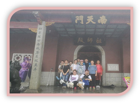 这些各具特色的植物让我们的行程饶有趣味,颇具意义,并将深深地烙印在我的脑海里。但更值得一提的,莫属于第二天向南天门进发了。也不知怎的,一个峰回路转,我们的信念便拧成一股绳,一致决定爬上南天门。通往南天门的路不像寻常走的盘山公路那样平坦宽阔,蜿蜒曲折的道路上布满了大大小小的碎石,前行的台阶忽高忽低,一不留神就有摔倒的危险;道路两旁林草丛生,遮蔽着阳光,使前行的道路充满了阴冷和幽静;细雨蒙蒙,夹杂着却带凉意的风,淅淅沥沥地洒在我们身上,增加了我们攀登的阻力。不一会儿,我们便气喘吁吁,走走停停,虽然李劲平老师几次问“同学们真的要爬上南天门吗?”,但气喘吁吁的我们依然固执地往上攀登,立志登上南天门。越往上,路便越陡,沿途留下的脚印也越发沉重,而天公也不作美,说闹脾气就闹脾气,瓢泼大雨倾盆而下,在我们的雨伞上张牙舞爪的嚣张。我们虽说精疲力竭,但心里那份不服输的倔强与坚持支撑着我们:不退缩,不退缩!也正是这种坚持,让我们挖到了茁壮肥厚的丹参呢!
