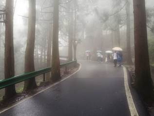 我一直问自己,为何要登顶?为了体验那君临天下快意,为了感受身处顶端时的喜悦。在能见度不满10米的南天门观景台,冒着疾风小雨,看着眼前白茫茫的一片,江山神马的都是浮云。哦,对了,和我们一起攀上南岳小高峰的还有那一袋子生长在山脚的药草,好歹也是带着他们见了一回世面,相信此生不悔了。