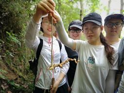 最后一天我们采到的品种大多是前两天采过的,不过也采到了一些新品种,或是之前的品种未出现的性状。比如带着花的鸡矢藤,鸡矢藤的味道真的是一言难尽。还有12年和13年的黄精,现在已经不知道被煲成了鸡汤进了谁的肚子。还有一组人心心念念的丹参终于在一个瀑布旁被徐康平老师发现。最后就决定在这个风水宝地考试了。大家一起复习了几遍,然后就考试了。考完试后大家一起在瀑布边戏水,合照留念。