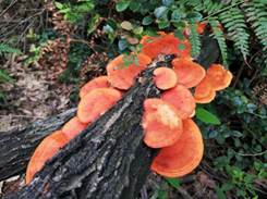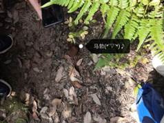 当我们迈着有些疲惫的步伐继续在山上摸索的时候,不知是谁的一句“看,这是不是灵芝!”重新燃起了大家伙儿的热情,爬了好久的山,付出的辛苦总算是不白费,一阵狂喜之后的我们纷纷和灵芝合影留念,欢笑声中我们继续往前走。