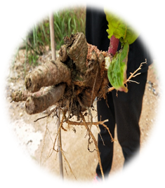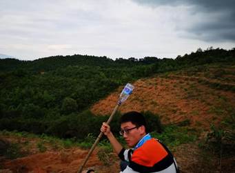 第二天,终于到了上山采药的环节,这也是采药的重头戏,徐老师很有经验的让我们都带上登山杖,可以减少体力的消耗,老师们还很细心的为我们打印了当地常见的药用植物,方便我们记录和搜寻,而邹老师则已经来此地踩过点,对我们的行程胸有成竹,负责我们的安全问题。“同学们,过来看,有没有谁知道这是什么植物?”大家围在一起,看着路边不起眼的紫色小花面面相觑,摸不着头脑,“这是地稔”邹老师话音刚落,大家才知道,原来那些路边不起眼的植物都可能是一种药用植物。我们便拿出工具开始了采挖,每个人轮番上阵,体验动手采药的乐趣,大家便一边前进一边在老师的讲解下采摘,一路有说有笑,老师也和我们打成一边。中午经过简单的休整,我们便将部队开往山里,大家顶着骄阳,勇往直前,徐老师在前面开路,邹老师和我们讲解,大家严整有序,不一会,徐老师便发现了人参的伪品:商陆,全株鲜红色,很有特点,两个男生自告奋勇,承担了采挖工作,进过一段时间的训练,很快就把商陆整株挖出,果然,其根部和人参十分相像,如果不看其地上部分,还是很难区分。收集完毕后,徐老师又在丛林中发现了薯蓣,就是我们说的山药,我和室友便钻了过去,开始动手采挖,发现薯蓣除了自身茎很长,扎根很深外,旁边植物的根也盘根错节,使得采挖过程不是很顺利,我们用手挖开土壤,却还是难以寻得其踪迹,而我又不小心将其茎挖断,导致我们最后只得到了一小段薯蓣,全身洁白,粉型、圆锥状膨大,和课本的描述一样,还是让我很开心。但没有发现黄精,让我们有些失望。七月的天酷暑难耐,大家渐渐丧失了斗志,邹老师和徐老师鼓励我们,“会当凌绝顶,一览众山小。”果然,当我们登顶后,发现这边风景独好,云雾缭绕,青翠欲滴,时不时有微风吹过,让人心旷神怡,我们也收获颇丰,奈何天公不作美,瓢泼大雨说来就来,我们只好匆匆下山,回去避雨。