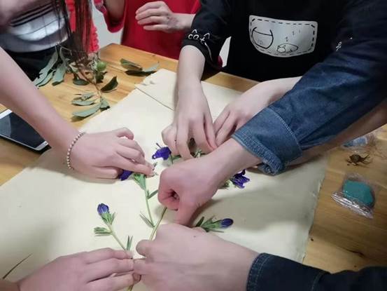 5号晚饭后,没来得及洗去白天转山后的疲惫,就直接开始了“签与签寻”制花草树叶书签活动与创新创业经验分享会。地点:药博园大会议室。