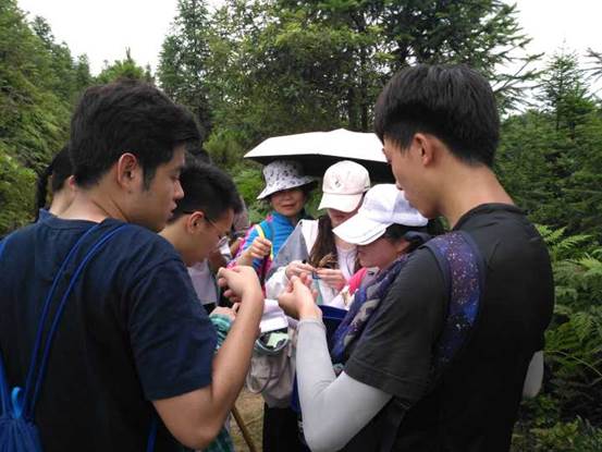大雨从6号傍晚一直下到7号上午,酣畅淋漓!那瀑布般的水柱从屋檐沟飞流而下,走廊婉如水帘洞口般壮观,将师生困在了住地。学生们可没心情听雨,一拨一拨过来问“考不考?”“考,当然要考,不是还有昨天采回来的标本么”!于是~~房间、餐厅、活动室、会议室、甚至走廊都成了验证此行收获的考场。