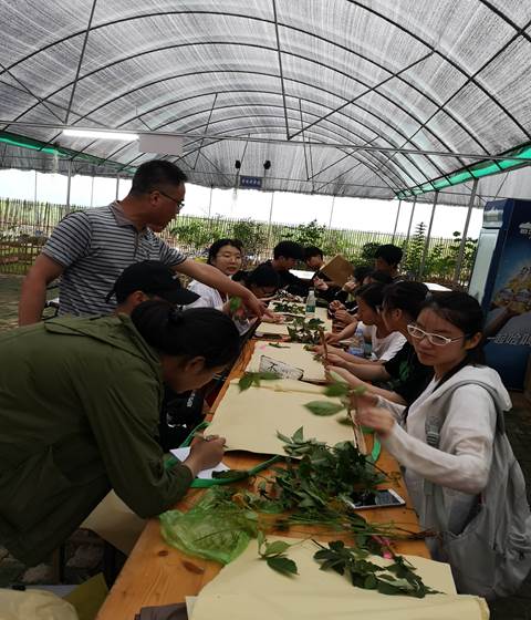 植物采集回来后,在大棚内清理、记录、挂牌做标本,是第二次学习的过程。图为曾老师在大棚指导学生温习标本。