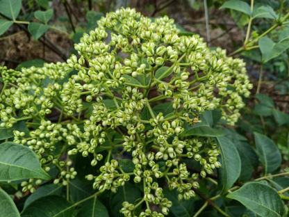吴茱萸大概是这两天里和我打照面最多的药了,在这种湿热的环境里吴茱萸肆意的生长,而且吴茱萸具有用量比较小、效果明显的特点。吴茱萸具有一股很特别的味道,我认为和山胡椒类似。可能就是中医里提及的“味辛”吧,总之我学着老师的样子从枝条上撸下来一小把吴茱萸的时候那个味道令我难以忘怀。吴茱萸是芸香科植物吴茱萸的干燥果实,单从它浓郁独特的味道就不难猜到它是芸香科植物,因为芸香科植物一个很大的特点就是大多含有油细胞,具有浓郁香气,比如我们生活中特别常见的水果——橘,就是芸香科的一大代表。吴茱萸味辛、苦,性热,有散寒止痛,降逆止呕,助阳止泻的功效,在临床上用于厥阴头痛,寒疝腹痛,寒湿脚气,经行腹痛,脘腹胀痛,呕吐吞酸,五更泄泻的治疗。