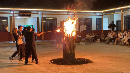 又比如第二天晚上我们围坐在篝火旁,举行了篝火晚会,载歌载舞的同时分享着一天的收获与趣事,那些被蚊虫叮咬的烦恼便烟消云散了
